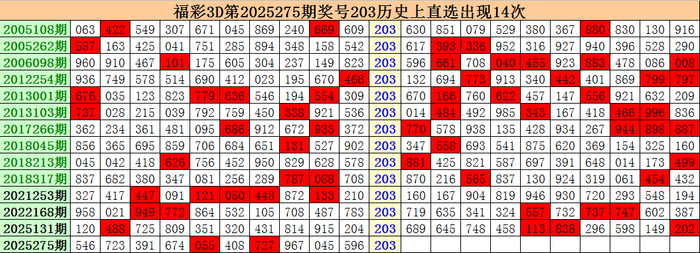 上期归来:福彩3D第2025275期开出奖号203。